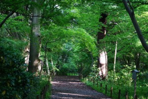 早朝に本丸を散策すると、太陽の光線が横から広がる様に当たり、新緑の彩色は美しく思わずシャッターを…。